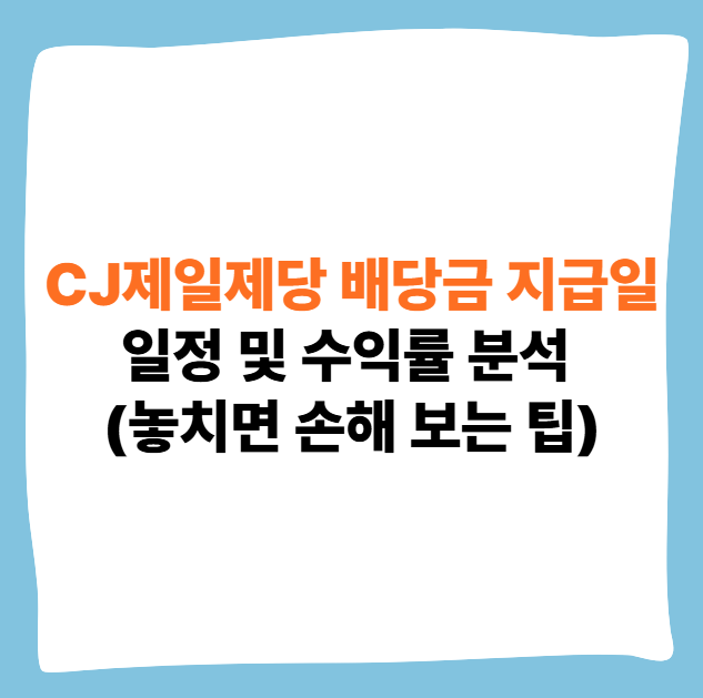 CJ제일제당 배당금 얼마? 지급일과 입금 확인법 총정리 바로가기